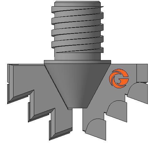 Ступенчатая форма режущей кромки долота под углом 70⁰, обеспечивает устойчивое разрушение забоя скважины в виде крупных кусков горной породы наличия дополнительных плоскостей обнажения, что обеспечивает высокую скорость бурения и быстрое удаление разрушенной породы с забоя.